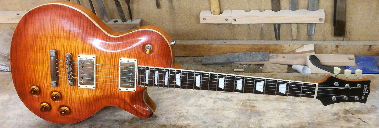 The glued in CNS system in conjunction with a Faber TOM with titanium saddles allows an incredibly rich, balanced, always transparent sound with a long sustain and excellent overtones. this is truly a ’59 Les Paul tone in perfection.